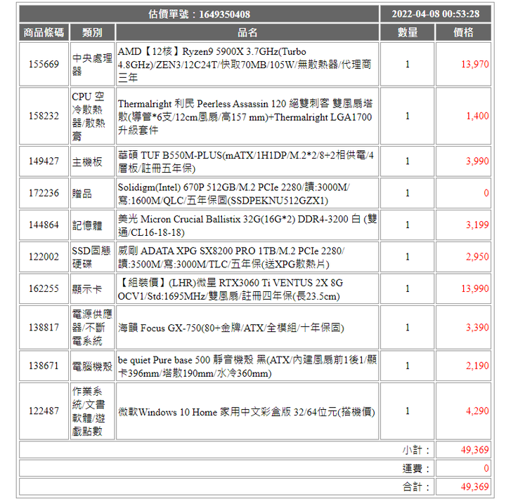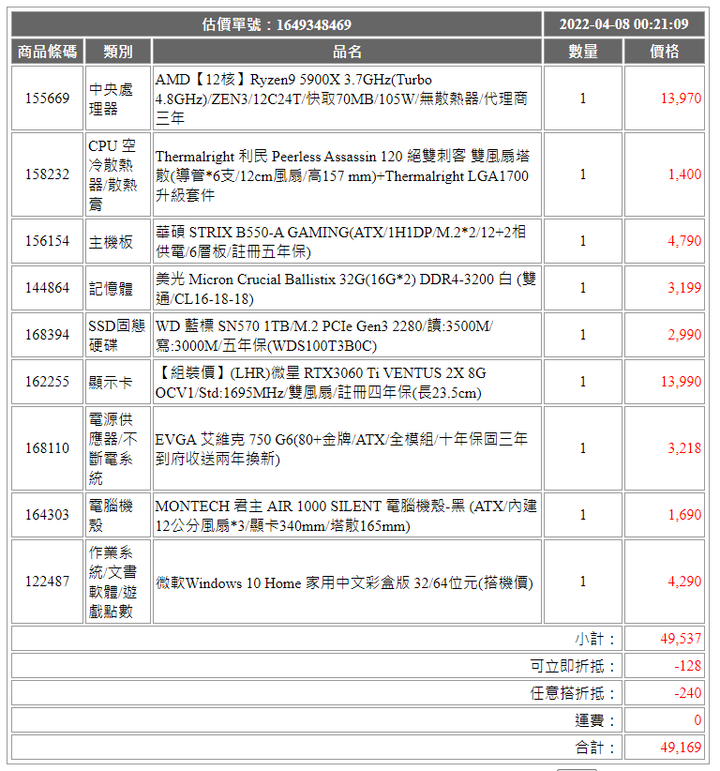 estroout wrote:1-遊戲:(1)LOL(恕刪) 殼你要 pure base 的話直接拿 600, 散熱差 90 在意聲音的話拿風魔 247k 含 os, i7-12700, 32g, 3060ti50k 小爆含 os, r9 5900x, 32g, 3060ticpu mb 組合多拿一隻 512g ssd, 主碟上新的 gen4 方案