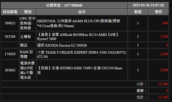 家人用了10年的電腦想換了,平常主要就看看YT掛個模擬器1開,顯卡我有備用的ROG RX570可用,有大概估一下INTEL和AMD平台的菜單,麻煩大家看一下有沒有需要改進的地方另外INTEL有必要加個2300升級成13500嗎