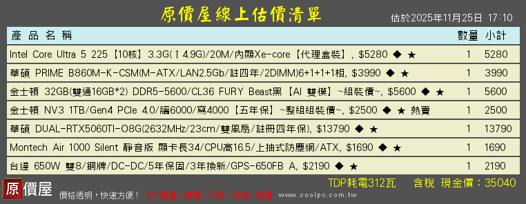 ctxexlzzx94 wrote:想去nova問問怕買貴,買套裝機又看很多人說盤子才買套裝 9500F +9060XT-16G +CL28低延遲 +B650 +MP600 PRO LPX板卡都是五年保菜單!