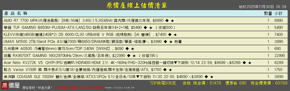 大直金城武 wrote:4k 144hz配備...(恕刪) 7700MPK +9070XT +CL30低延遲48G +B850八層板溫度低 +M1500 2T含4K螢幕菜單!大直金城武 wrote:螢幕面板IPS跟OLED會推薦哪一個 兩者價差1萬多-2萬多,也太廣對比基準點差太多!