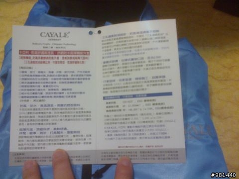 吊卡的幾張特寫,特別強調他的防風、防寒、抗UV、防中度雨、高透氣,感覺真的好像有他的價值