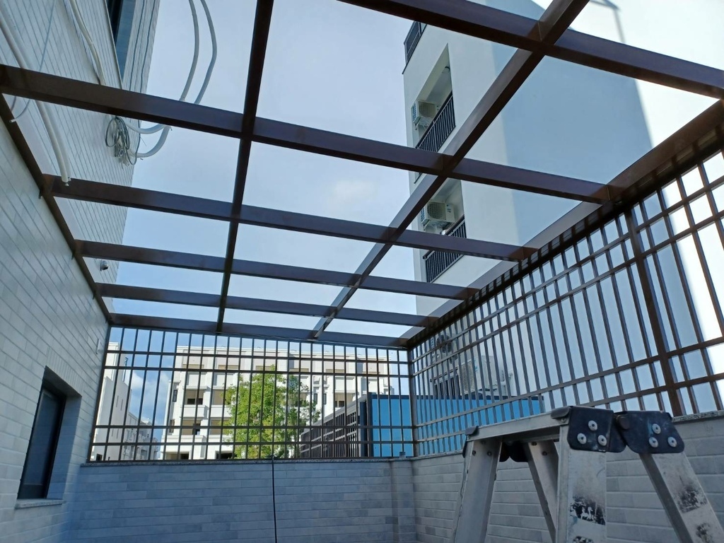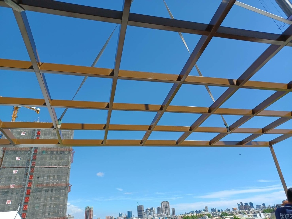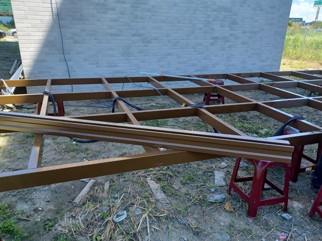 ▼師傅搬來時是已經焊接好的遮雨棚鐵架,快速又省時~