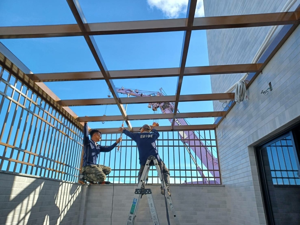 ▼玻璃安裝完成~是使用5+5的強化玻璃呦,就算颱風來也不會有垃圾吹進來啦~(到底有多害怕颱風的一家人XD)