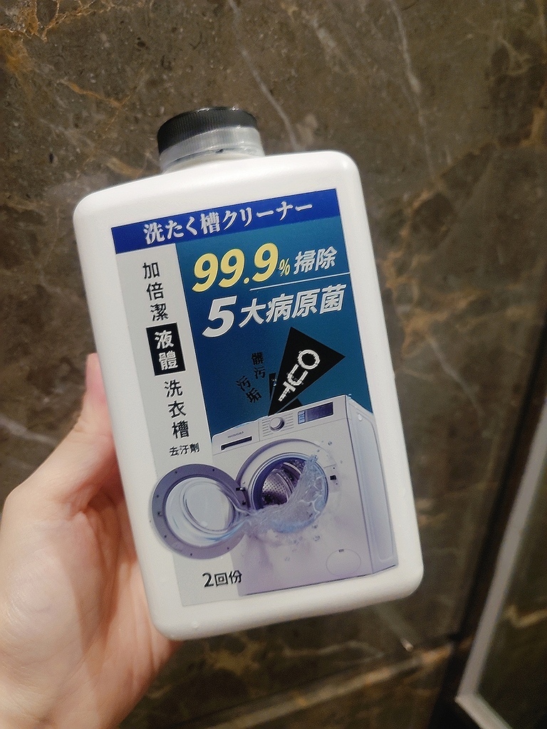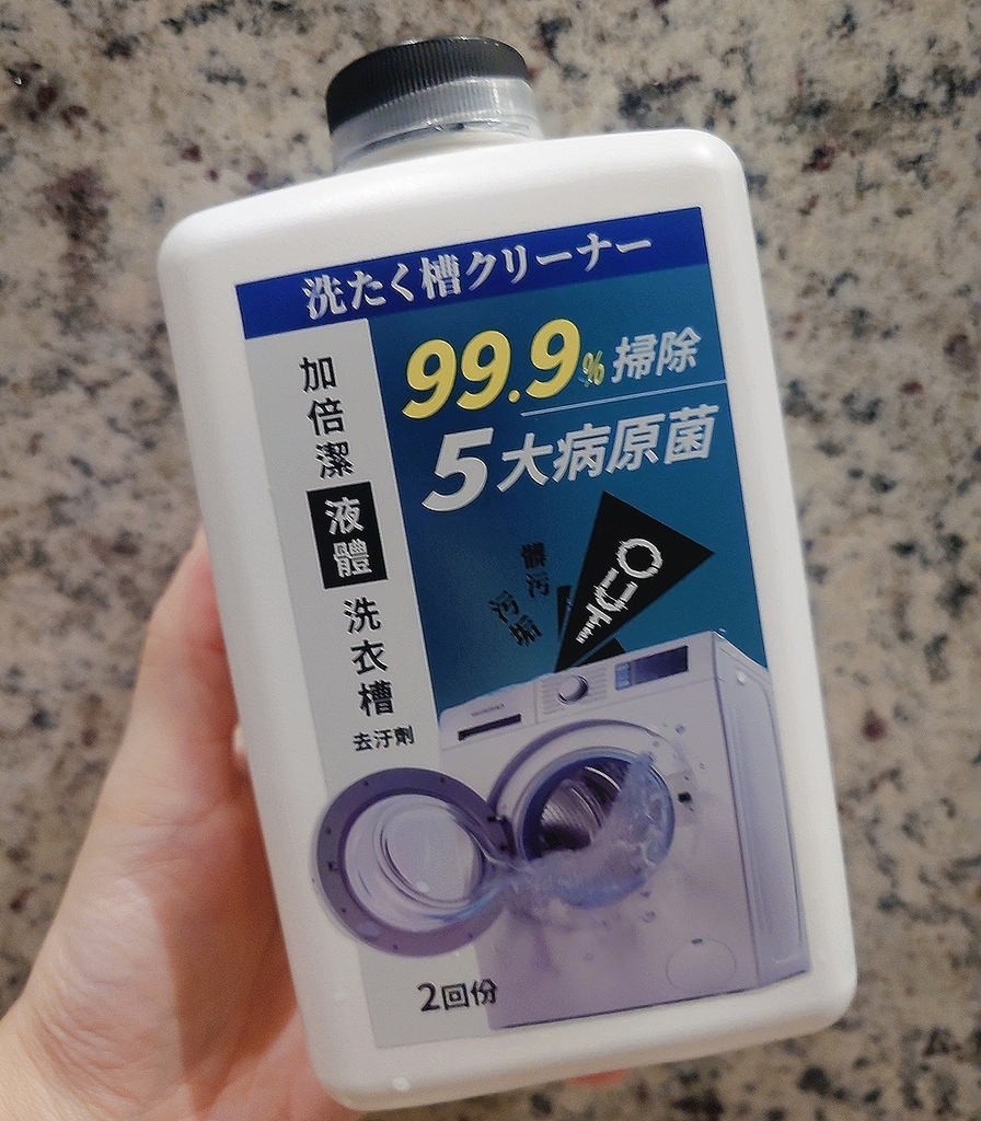 這時候,我固定搭配使用 加倍潔液體洗衣槽去汙劑。只要在洗衣槽洗程開始前,把整罐倒下去,一鍵啟動,就能讓洗衣機進行深層去汙。