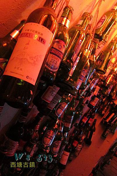 他憂心將來這邊會失去從前那種歷史悠久的鄉村感覺。看這個酒瓶牆就知道了