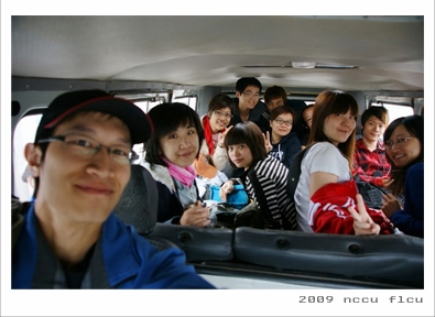 被塞的滿滿的小台箱型車,因為實在坐不下,還包了另外一台計程車