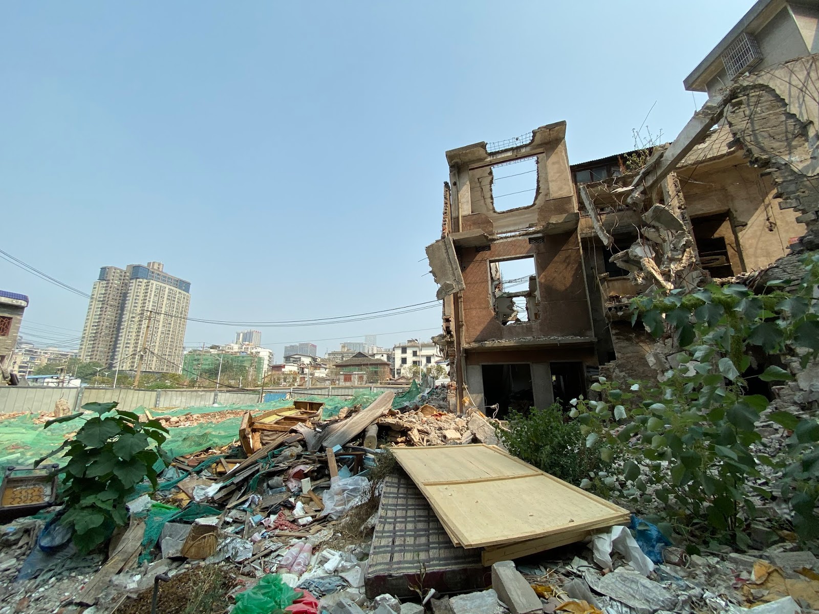 從小古道巷小學再向前走,有左右兩路。左邊到磨盤灣路而右面就是「南倒脱靴巷」,此帶區域現在是重建中,所以會見到地盤。有些拆卸中的樓房。將來這些古老街道會不會消失於時代變化中就沒有人知曉了,