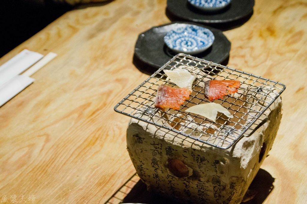 加熱後的乾鮭魚跟乾魚鰭變得很柔軟,濃郁的鮮味更是在美乃滋下襯托的更突出。這裡的下酒菜是自己烤的,讓我們使用的小火爐也是很可愛,慢慢烤慢慢喝,烘烤時散發出來的海鮮芬芳真的讓人食慾大開。