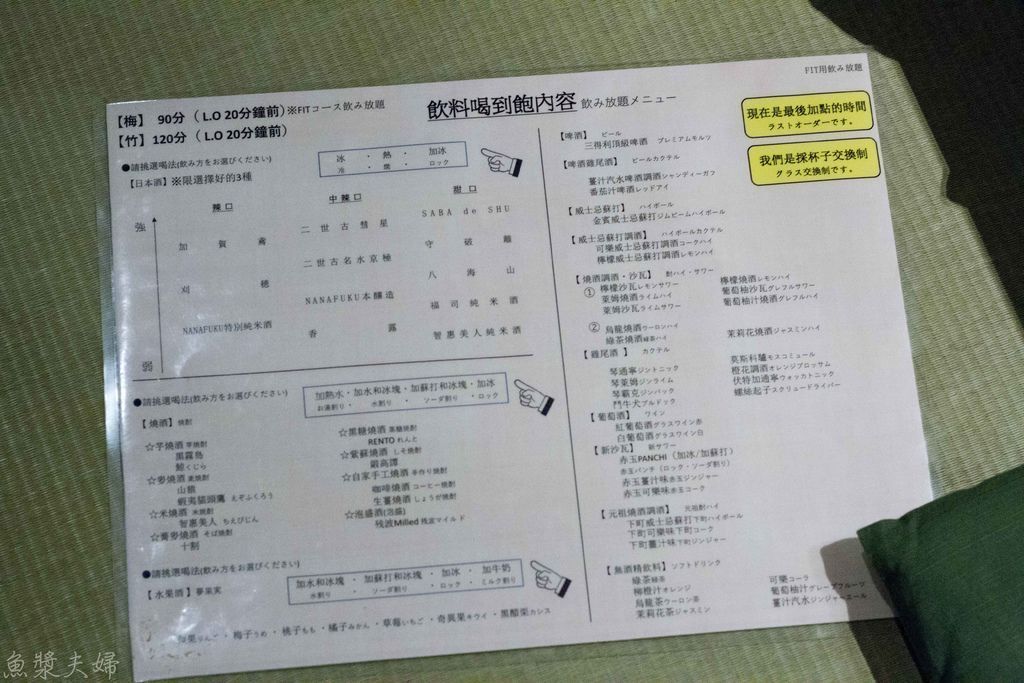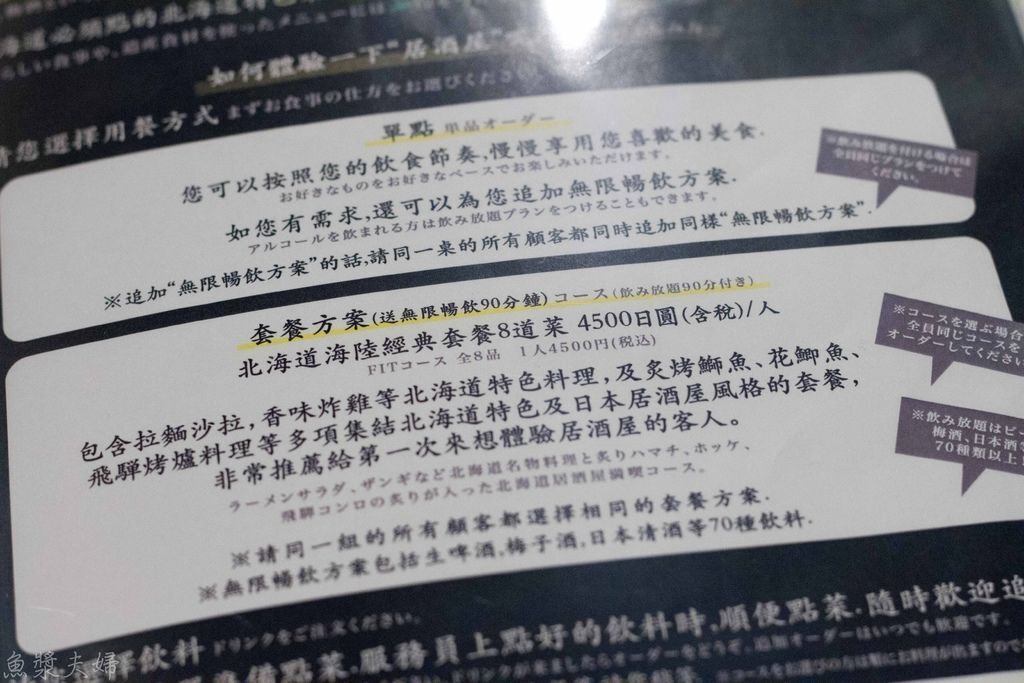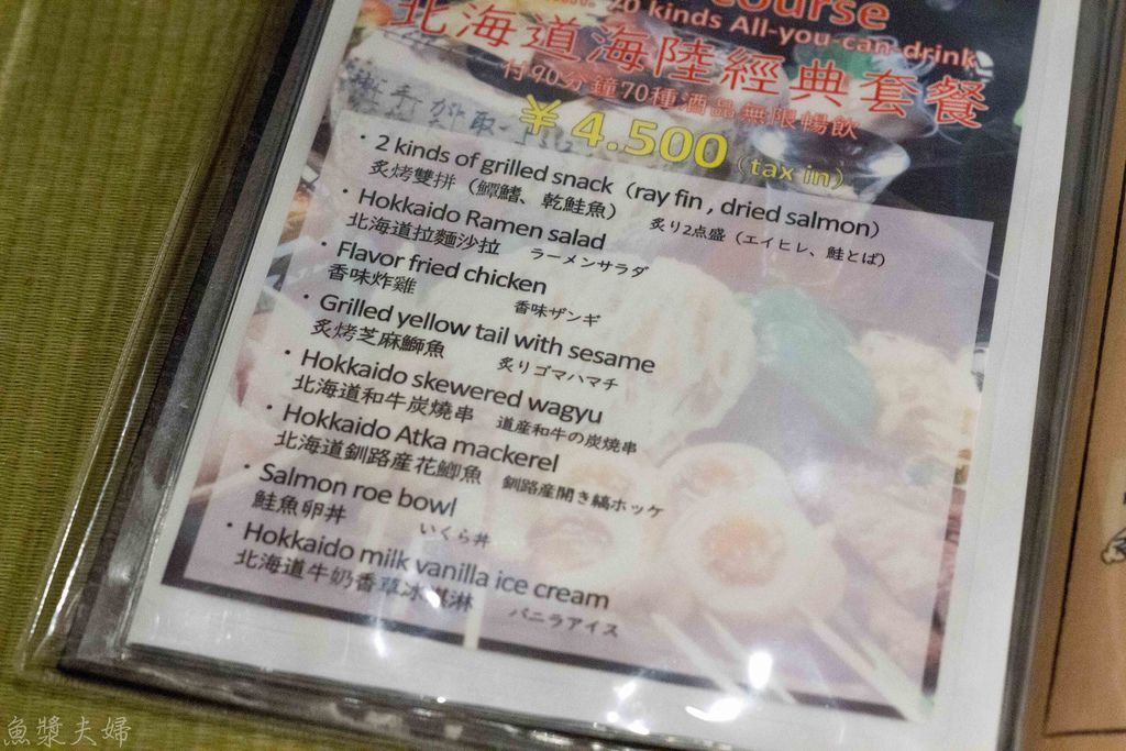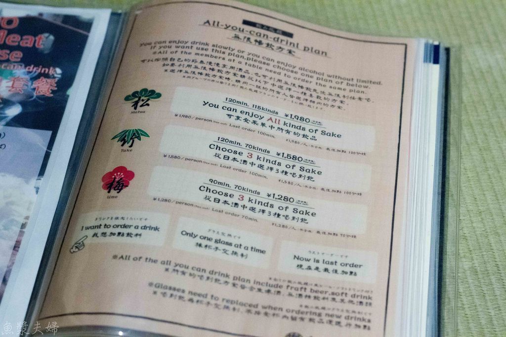 菜單上也親切用繁體字進行說明,價位上已經是包含了喝到飽。裡面提供的日本酒都是頗有名氣的品牌,對於酒量好的朋友可說是十分划算。