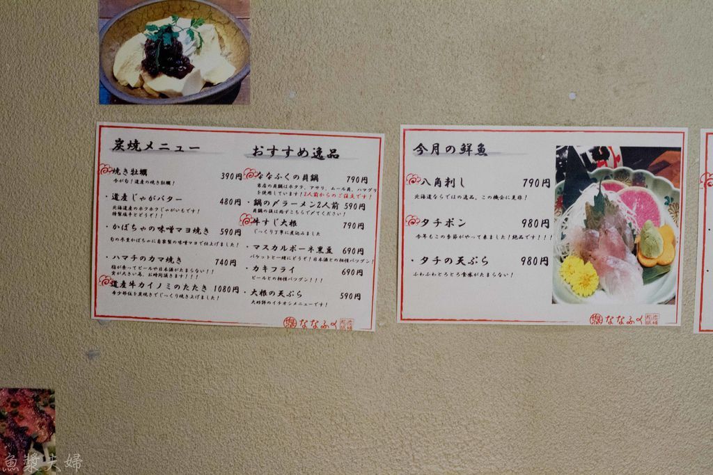 「七福ななふく」就在狸小路旁的大馬路上,是標榜著以北海道炭燒料理跟日本酒為主打的居酒屋。