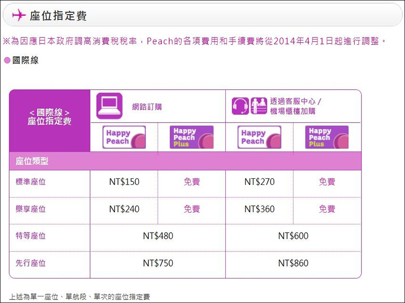 ilovesinging wrote:第一次要做樂桃去日本...(恕刪) 是不是座位的排次不同呢?(如果是班次的問題以下請忽略...)有些排的位置腳部空間比較寬敞有些排的前後距離比較長有些排剛好會被機翼擋住視野有些排可以和空姐面對面坐著聯誼...(誤)廉價航空的訂價策略就是如此也不是一樣經濟艙 全部座位的價格都是相同的喔....
