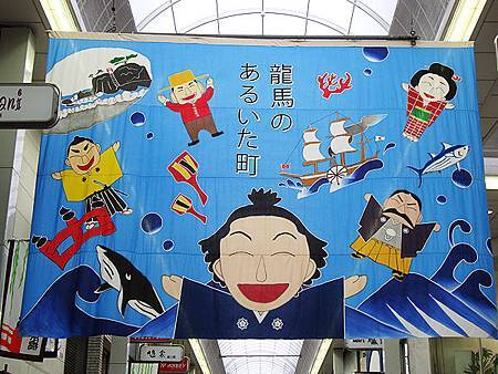 飯店check in後、整理片刻就馬上出飯店去市區逛,因為朋友想先去ABC看鞋、來到了離飯店附近的帶屋町商店街、這區域算是較熱鬧的地方,整條商店街還是一樣都有龍馬相關的景物。