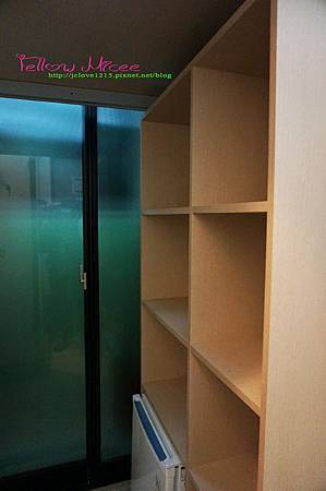 另一邊有格子可以放置用品,一共七格,很夠放,還有冰箱(但因為天氣夠冷..所以我沒用到)