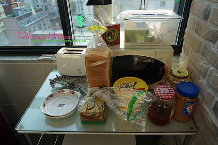簡單的早餐提供,吐司、果醬、咖啡、茶