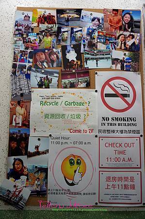 每個樓層也都有留言板還有大家玩樂的照片,還有一些入住的注意事項,請大家要遵守,畢竟出了國門就是代表台灣唷~~不要讓嫦娥笑我們髒!!!