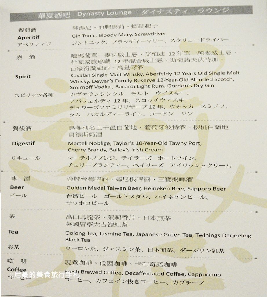 ▲另一面則是酒單的部分,老實說個人覺得種類不算多