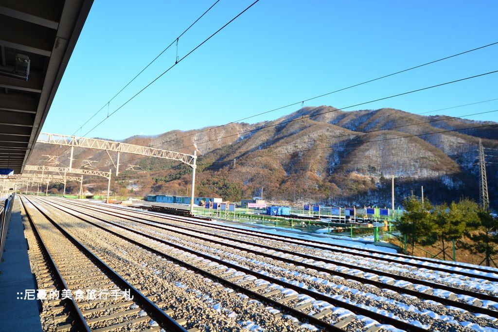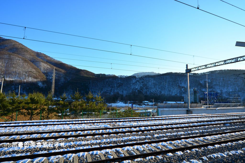 一下車後對面山上跟鐵軌上有些白雪,滿美的