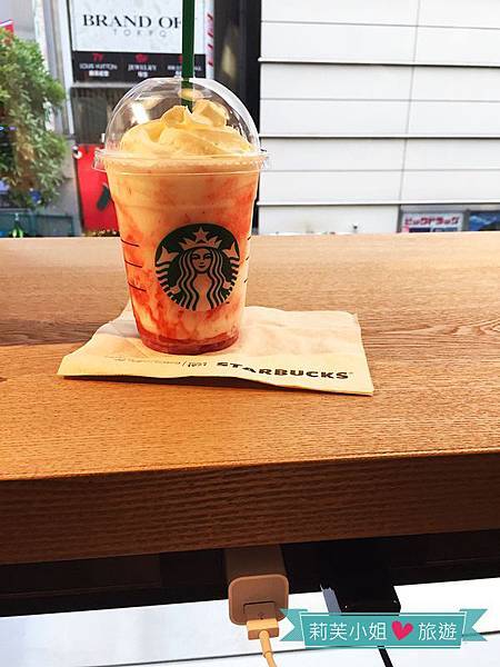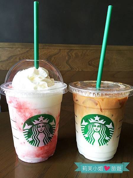 本日的餐點是一杯草莓奶霜星冰樂和一杯冰焦糖瑪奇朵,喝起來跟台灣慣喝的口感不同,應該是牛奶造成的差異吧!