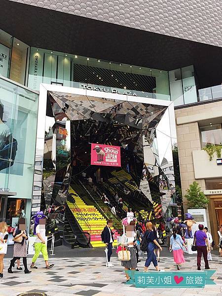 Tokyu Plaza入口處的鏡面設計和動物裝置藝術,讓人忍不住留影。建議直接搭面對入口處左手邊的電梯直達6樓比較快。
