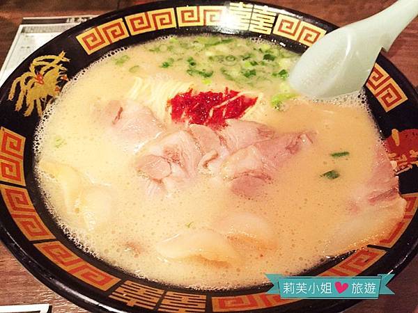 加了蔥花跟一點辣醬的拉麵,麵條選得是一般(偏硬)的口感,湯頭也選一般(偏鹹),想試試看純正濃郁的豚骨湯頭滋味,果然是很難全部把湯都喝光。