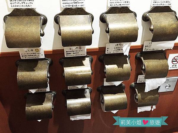 離開前參觀一下一蘭拉麵壯觀的滾筒衛生紙,一次放上12個,省去服務生得一直補貨的時間,順便在12個滾筒寫上12星座運勢,增加趣味性。