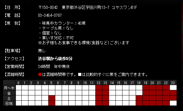 地址:〒150-0042 東京都渋谷区宇田川町13-7 コヤスワンB1F