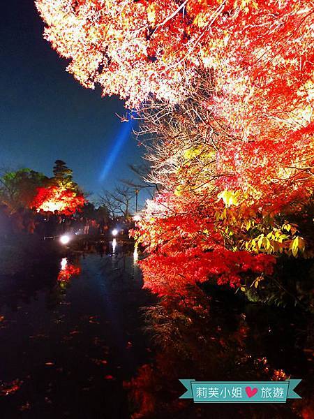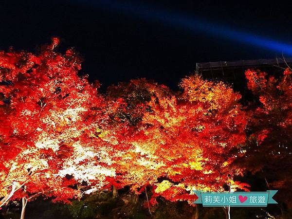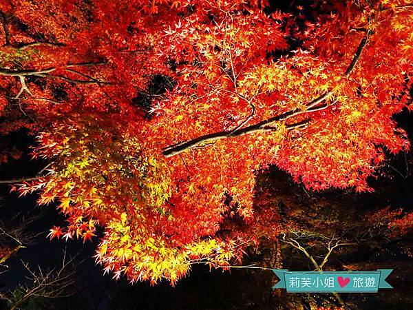 寺廟裡頭處處打著燈光,加上昏暗的夜色,楓葉究竟多紅實在很難判斷,不過依舊美得讓人忍不住直按快門。