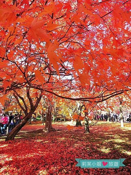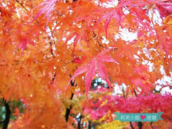 盛紅的楓葉,搭配著庭園造景、小橋流水,怎麼拍都美。