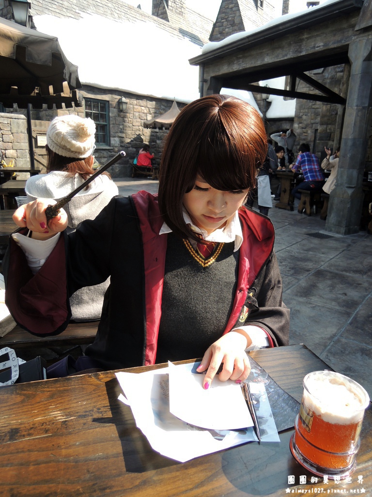 可是,奶油啤酒欸!!!!!! 還在為哈利波特園區興奮的我,哪受得了這誘惑XD 還是點了一杯奶油啤酒,用紀念啤酒杯裝!!!!