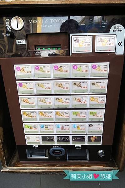 由於MOMI & TOY'S自動售票機上面只會顯示日文產品名稱、號碼跟價格,所以不通日文的話,建議先記下車體側邊的圖片廣告代號,才不會手忙腳亂。