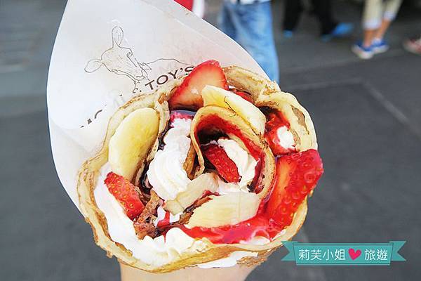 走在原宿竹下通的路上,沿路有好幾家法式可麗餅店,隨意挑了一家有餐車MOMI & TOY'S Crêperie的來嚐鮮。
