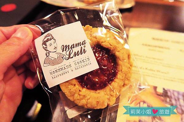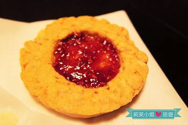 蔓越莓果醬餅乾吃起來完全就是歐式的作法,正中間圓形的果醬經過烘烤之後,甜味完全被釋放出來,搭配餅乾入口就不會黏牙,口感上略為扎實,點來搭配咖啡正好。