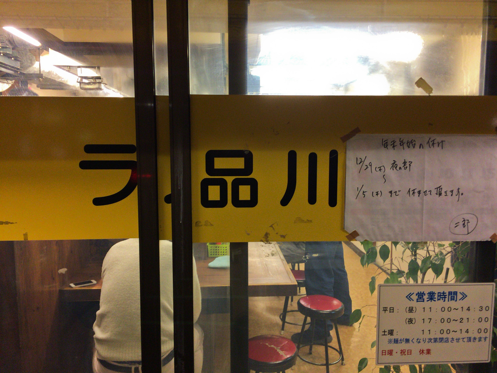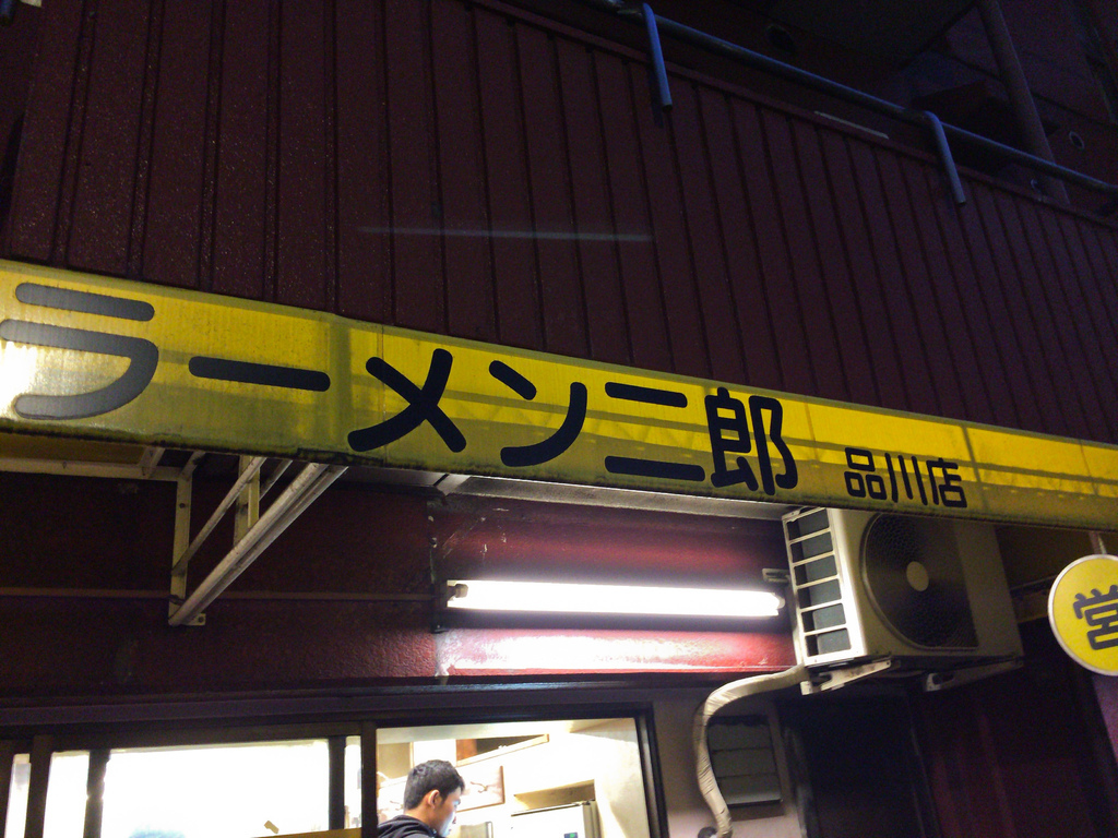 我走著走著,經過了幾家沿岸邊的船家餐廳,皆所費不貲。晃著晃著,看到了二郎拉麵品川店,想起好像很久沒有吃二郎拉麵了,便走了進去。