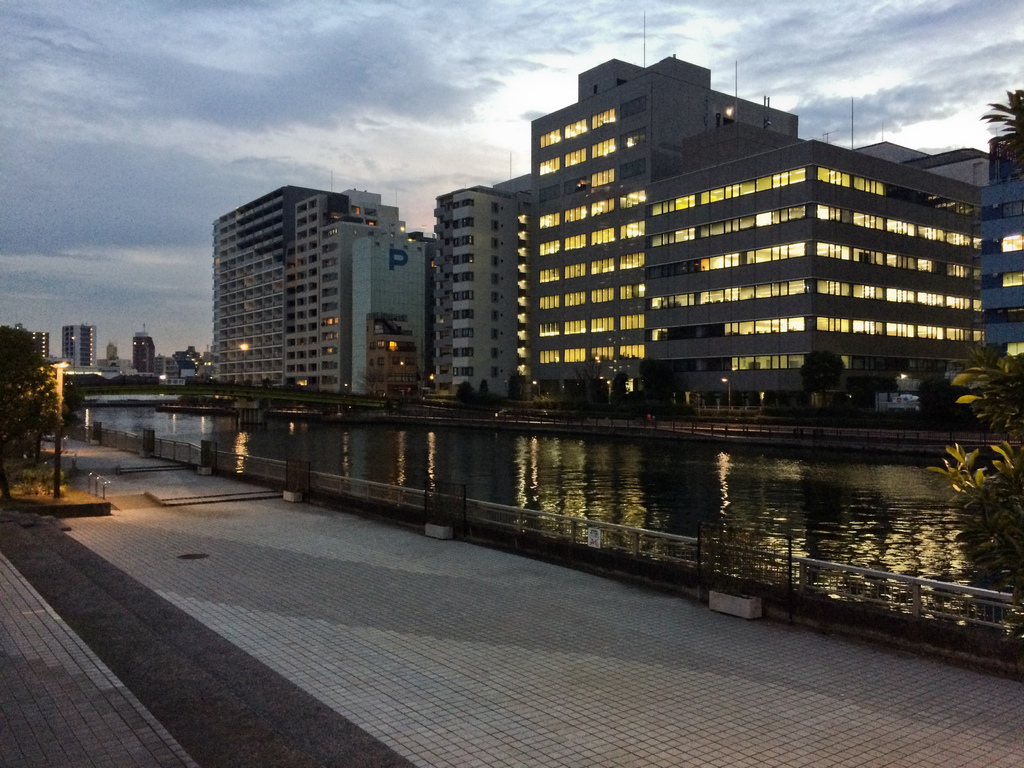 今年一月的時候,因為幫朋友處理簽證事務,就來到了品川這邊。一忙下去就傍晚了,不料這邊沿岸的傍晚景色十分美麗。剛好晚上沒什麼事,便沿著堤岸散步走走。