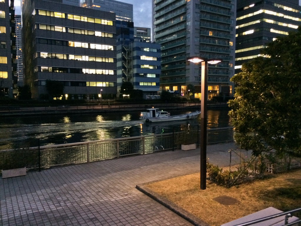 品川的岸邊夜晚十分迷人,時不時有著小小的汽艇帶著噠噠的馬達聲經過,在湖面上撩起一陣細碎的浪花。