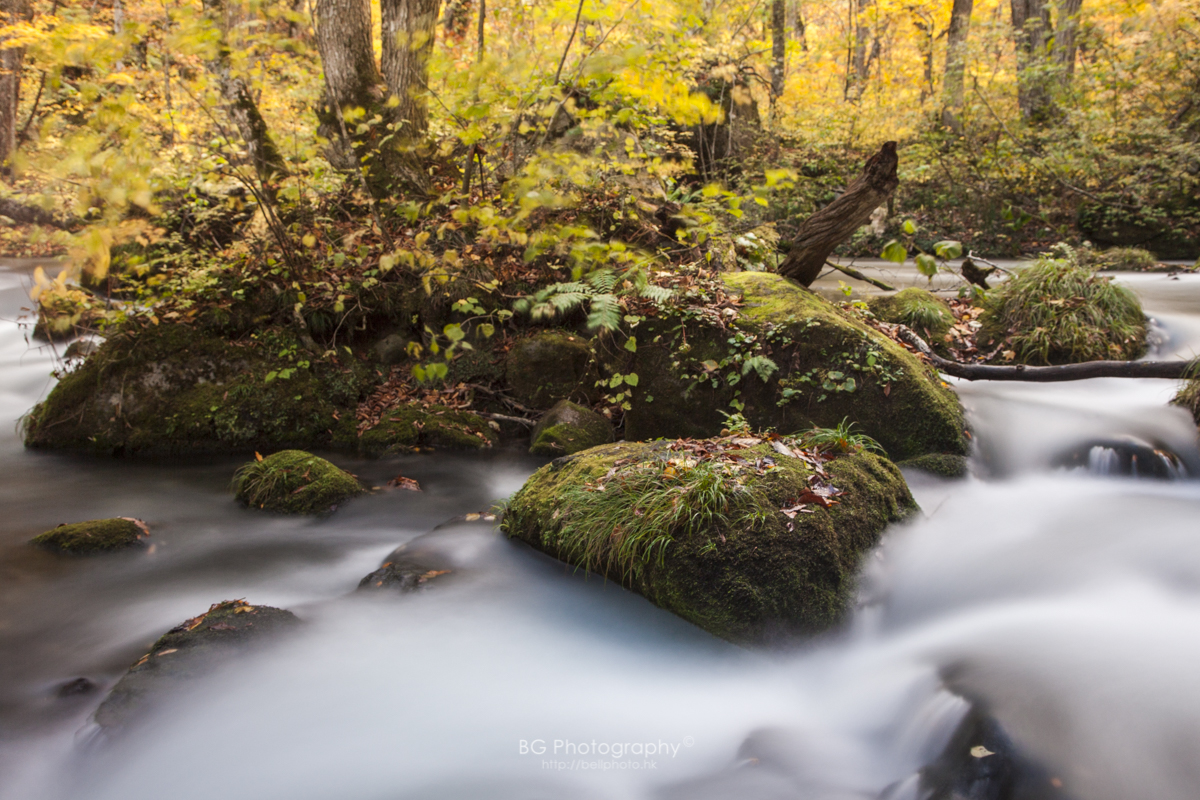 | (09年)奧入瀨溪流,這次來到的時間剛好,銀杏樹葉轉為金黃色。 |