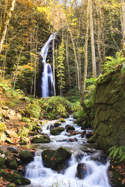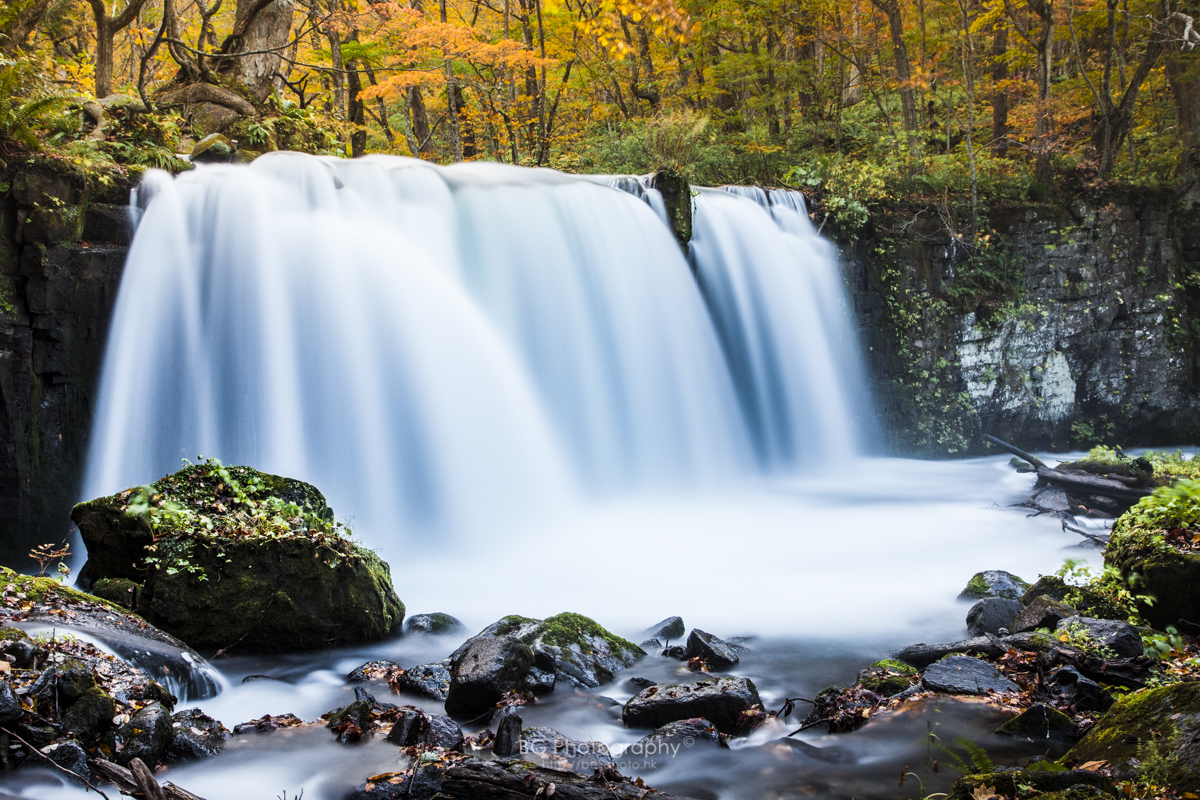 銚子大瀑布奧入瀨溪中最有代表性的瀑布,壯觀的景色令人目不暇給。光線隨著激起的水花,在森林中或透出金光霧氣或照出艷麗的彩虹,每次都看得入神。