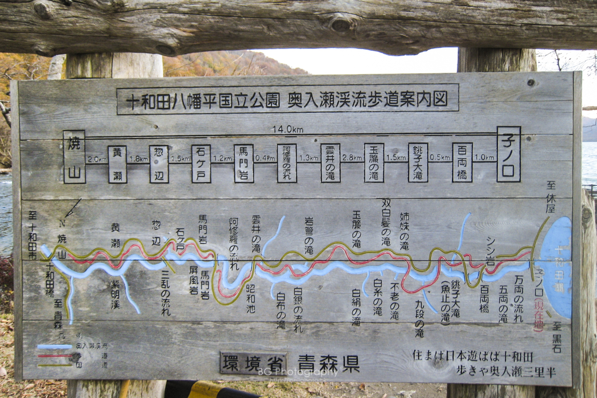 | 沿溪的步道指示充足,可一直走到十和田湖畔,完全不用擔心會迷路。 |
