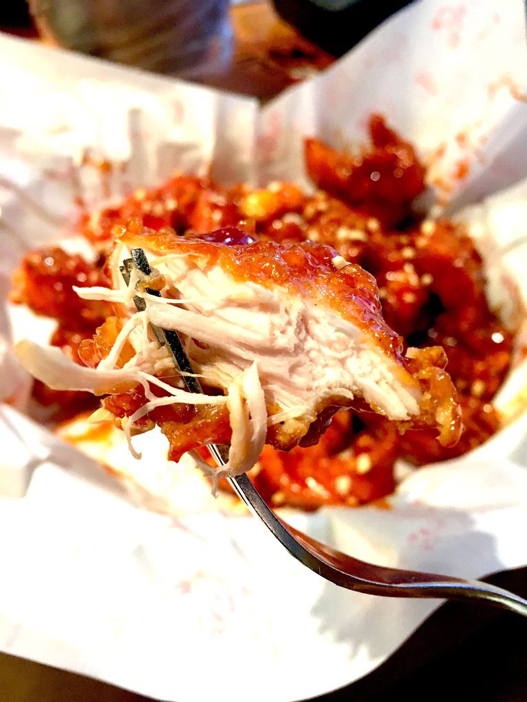 不過雖然對服務生白眼,炸雞好吃耶! 無骨的真的完全沒有骨頭,整塊完整個肉一口吞! 雖說甜辣,其實醬料沒有甚麼辣度香氣是有的,辣大概要另外加。