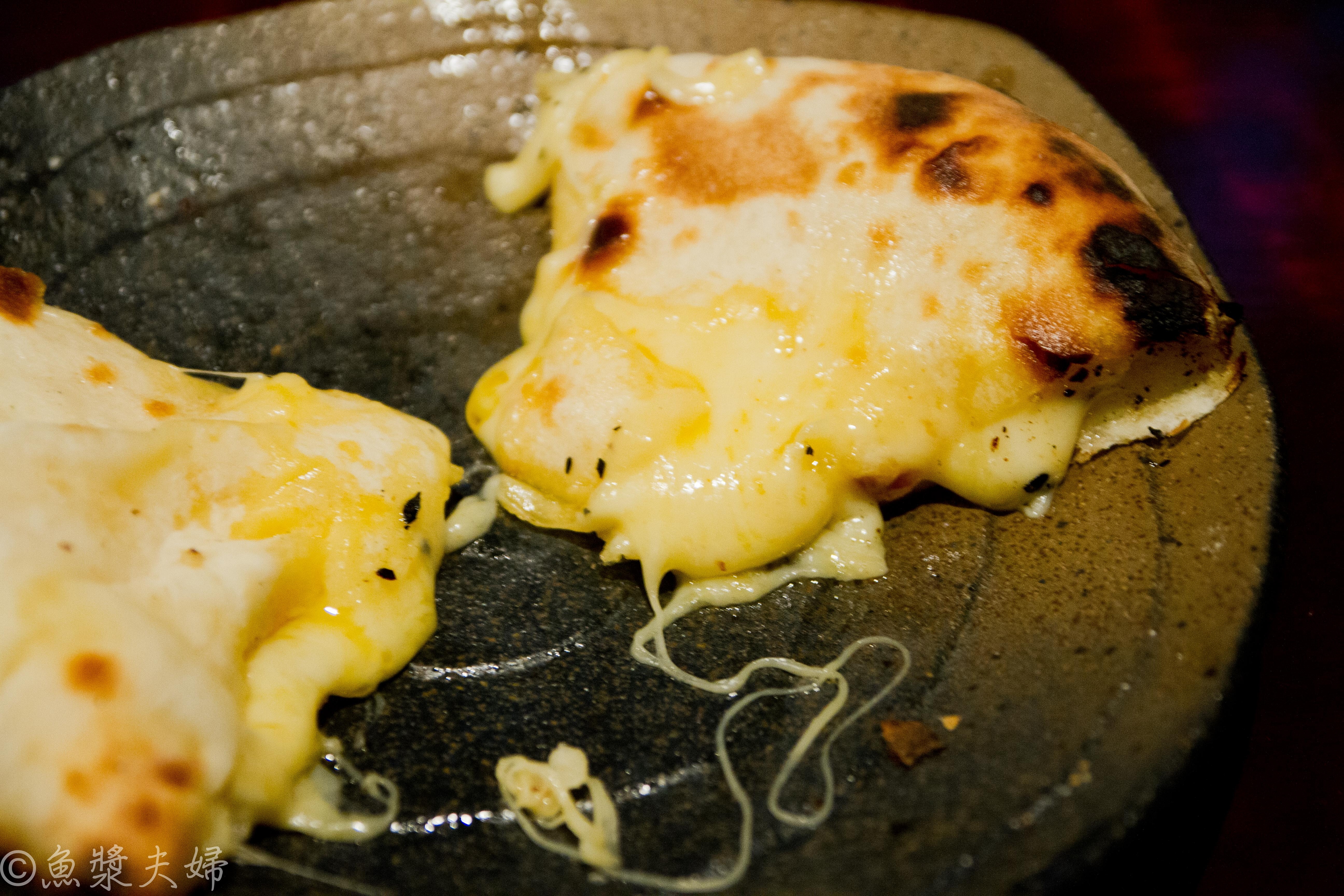 第一次吃起司烤餅是在大塚的日本第一咖哩カッチャル バッチャル ,初嚐時甚是喜歡,但總覺得過於含蓄。嚐了饢坑酒吧的起司烤餅才恍然大悟,原來是不夠焦。