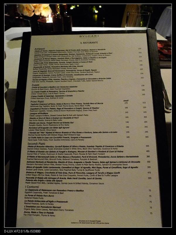 IL RESTAURENT的菜單,主要分成分成ANTIPASTI(開胃菜),ZUPPE(湯),PRIMI PIATTI(意大利餐裏面第一道主菜,主要都是意大利面類),SECONDI PIATTI(第二道主菜,主要是海鮮和肉類為主)和I CONTORNI(小配菜,也就是SIDE DISHES)