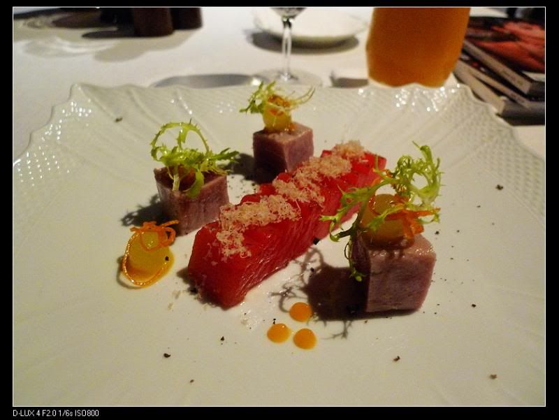 開胃菜,TUNA BELLY配上西瓜,吃起來很清爽哦~