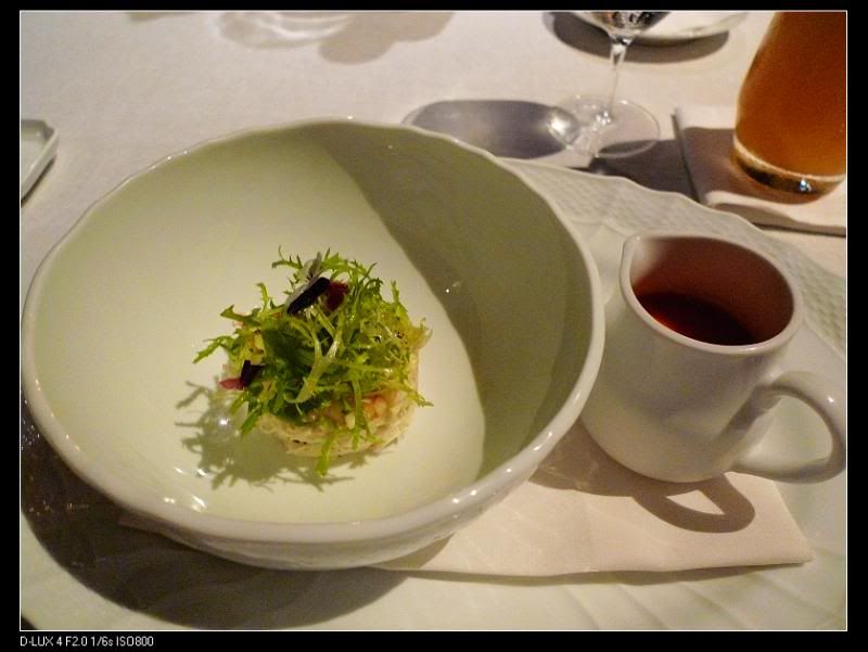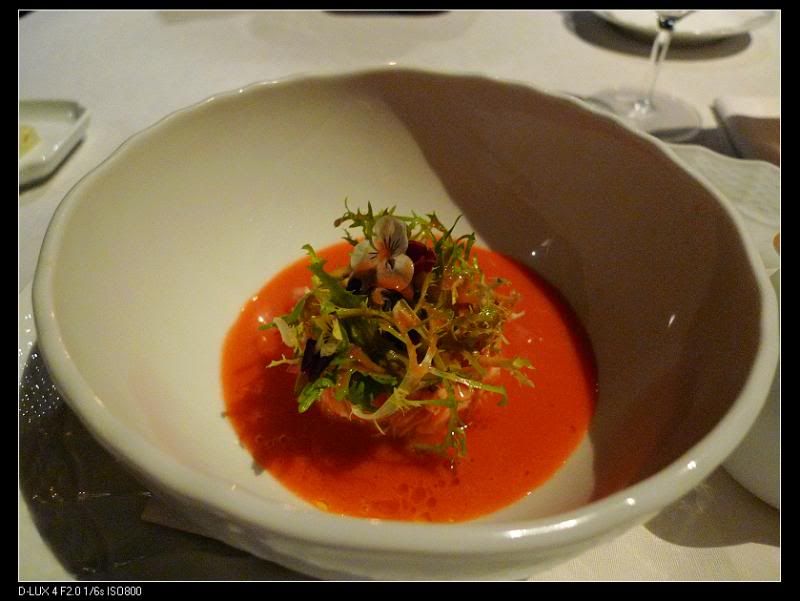 湯我點的是螃蟹冷湯,其實我本身是對冷湯沒什麽好感,但是在廚師的建議下還是點了這道來嘗試下,端出來的時候湯和材料是分開的哦~