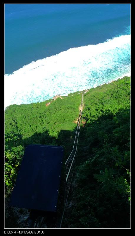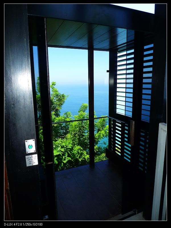 因為BULGARI RESORT是建立在懸崖上,所以要到海邊的話是要乘搭酒店的纜車電梯,這張照片可以看得出這個懸崖又多高,用走的話我相信沒多少人願意走啊~