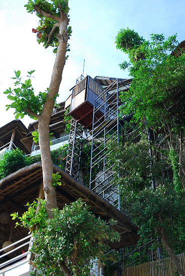 Nami有個非常特別的竹籠電梯,升降時會發出轟隆隆的聲響,因為行前爬文先知道就不覺得可怕。據說這電梯偶爾會罷工,沒得坐就得爬層層階梯還挺累人的!