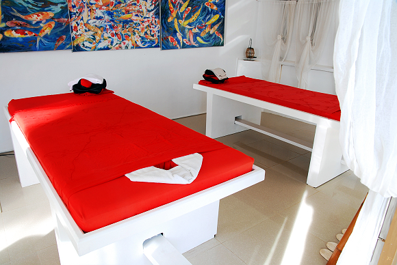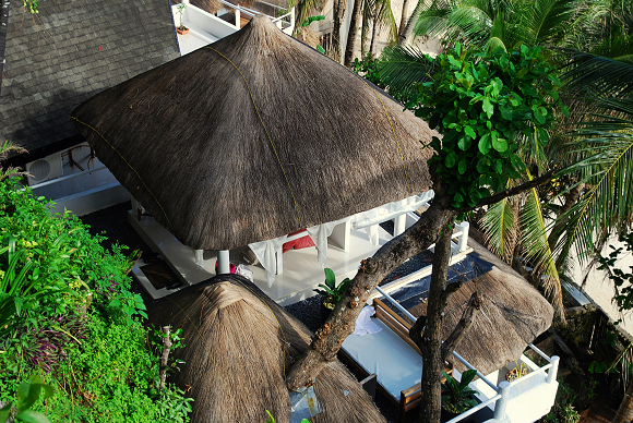 被帶到位於2F的Spa Room,想必3F已有人在使用,只能安慰自己這裡是半開放式的、隱密性較高,比較不會在翻身時一不小心就被看光光。跟多數人一樣,我們也是選Swedish Massage(1H/900p),屬於全身的精油按摩,旁邊有浴室,換裝前可以先沖個澡。這時候其實還是滿熱的,建議可以預約晚一點接近日落時分(順便看夕陽),作起Spa來會更加舒適。