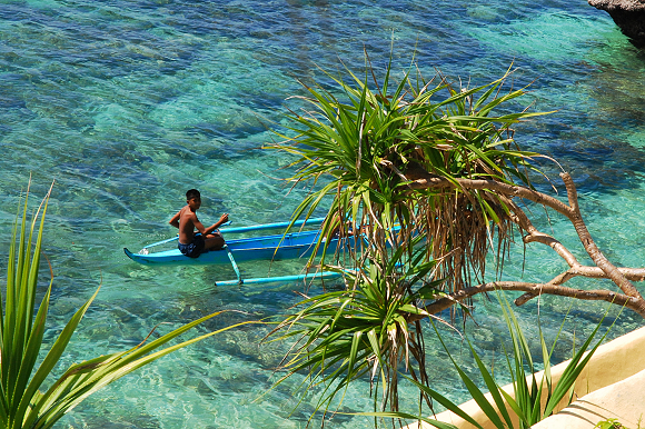 在West Cove可以直接從照片中箭頭指的階梯處下水,這一區屬岩岸,水比較深,走沒幾步路就踩不到底了。我們就是從這裡游到不遠處的那片Diniwid Beach,常常會看到一些諳水性的人,戴著呼吸管就這麼悠悠哉哉的在海中遨游,還有當地的孩子們也玩得不亦樂乎,讓人好生羨慕!