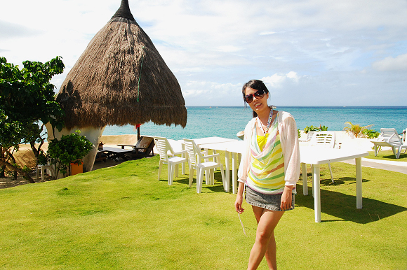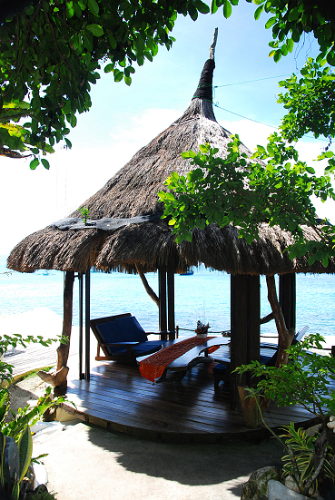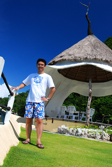 待到約莫中午12點多,才想到下午要去SPA、接著可能會去S1玩拖曳傘,而隔天就要搭機返台玩水後還要沖洗很麻煩,這時候再不抽出時間去泡泡水也許就沒機會了,所以老公拿出我們第二天在d*talipapa買的大泳圈,吹到頭昏缺氧、嘴巴痠到不行,才終於把它吹鼓... 我們兩個在烈日底下從West Cove碼頭游到Diniwid Beach,泡在海水裡一點都不覺得熱,要不是因為怕曬黑,真想慵懶地躺在泳圈上作作日光浴!前兩天也有下水玩,雖然擦了防曬乳液,到後來才發現它防曬傷不防曬黑,結果我們馬上變成了小黑人,脫下泳衣明顯的兩截色差,不知道白回來要花多久的時間