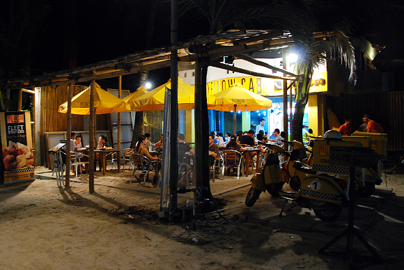 YELLOW CAB PIZZA我們頭兩天住在Astoria Boracay時,旁邊就有一家小小的YELLOW CAB,只是當時沒去吃... 等到後來第四天晚上要去時,竟然呈現大門深鎖的狀態,那也安呢??不甘心吃不到想吃的東西,即使已經走到腿快斷了,還是決定賭賭看S3的YELLOW CAB有沒有開。我們這次來長灘島遊玩範圍都在Diniwid Beach、S1和S2,原本沒有打算到S3,沒想到竟然是因為這樣而改變了計畫。從主道路搭乘嘟嘟車到S3很快,但是要從主道路路口找到位在沙灘路上的店面就要花一些時間了,所幸有好心人指引,沒花太多時間就找到了!看見燈火通明的YELLOW CAB真是開心極了!