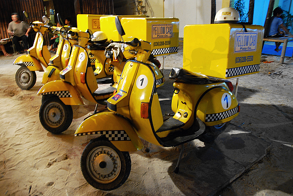 他們外送的摩托車漆得跟招牌Logo一樣黃通通的,十足吸睛哪!